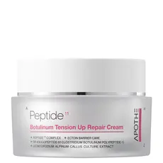 APOTHE Peptide Botulinum Tension Up Repair Cream - це ліпосомальний ліфтинг-крем з ботуліноподібним пептидом, призначений для відновлення пружності та сяйва шкіри.  Ефективний крем бореться з віковими змінами, зменшуючи зморшки та напруження шкіри.  Містить ектоїн для захисту від довкілля і зволоження, зміцнюючи шкірний бар'єр і роблячи шкіру стійкішою до зовнішніх впливів.